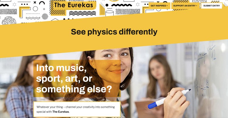 Mae'r Eurekas yn gystadleuaeth ffiseg flynyddol i fyfyrwyr 11-16 oed yn y Deyrnas Unedig ac Iwerddon. Mae'n rhan o'r ymgyrch Limit Less, a luniwyd gan y Sefydliad Ffiseg i ehangu ac amrywio'r ystod o bobl sy'n gwneud ffiseg ar ôl 16 oed. Mae cystadleuaeth eleni bellach ar agor! Rydym am wybod: Sut gall ffiseg helpu i baratoi eich cartref ar gyfer y dyfodol? Boed yn gelfyddydol, yn chwaraeon, yn gerddorol neu'n ymwneud â llenyddiaeth ac iaith, gwyddoniaeth neu'r dyniaethau, rydym yn chwilio am fyfyrwyr i ddangos sut y gall ffiseg ddarparu'r ateb i'r dirgelion yn ein bywydau. Gall unrhyw fyfyriwr 11-16 oed gymryd rhan a bydd pob cais sy'n bodloni'r meini prawf yn cael ei dderbyn. Bydd panel beirniadu ysbrydoledig yn penderfynu pa geisiadau sy'n dangos gwreiddioldeb a chreadigrwydd eithriadol, gyda nifer o wobrau ar gael i fyfyrwyr a'u hysgolion. Byddwch yn greadigol a dangoswch eich syniadau i ni. Mae cyflwyniadau bellach ar agor tan 8 Mehefin 2026. Mwy o wybodaeth yma